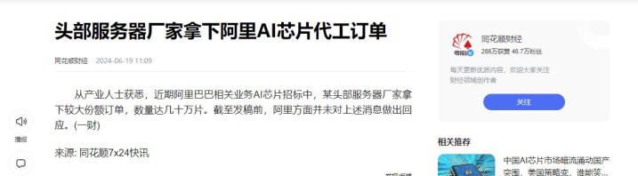 其五,阿里切入AI芯片市场,国内的头部服务器厂商也将因此迎来订单红利。早在2024年6月,在阿里巴巴相关业务AI芯片招标中,就有某头部服务器厂家拿下较大份额订单,数量达几十万片。目前该服务器厂商是哪一家,暂未可知。